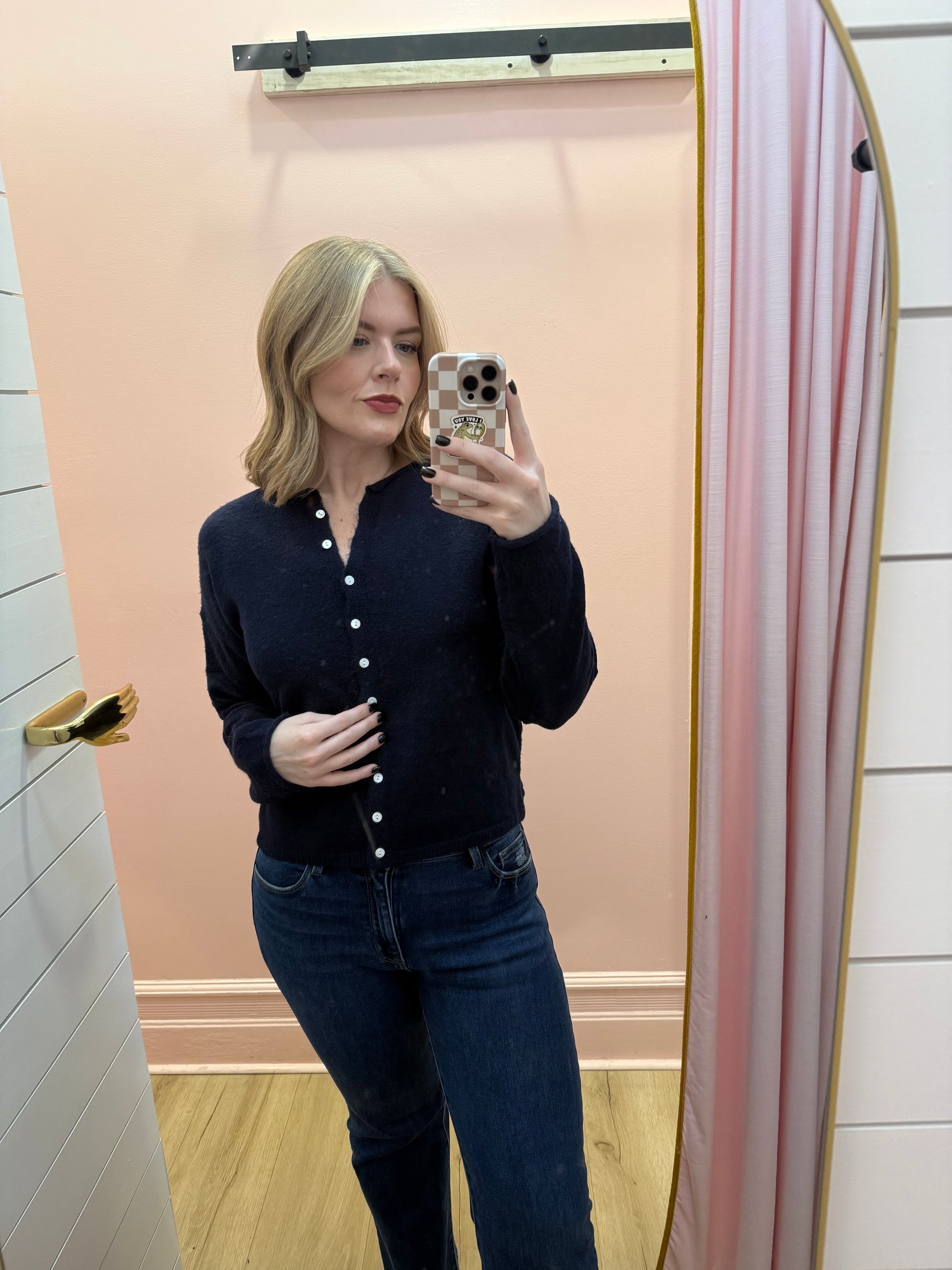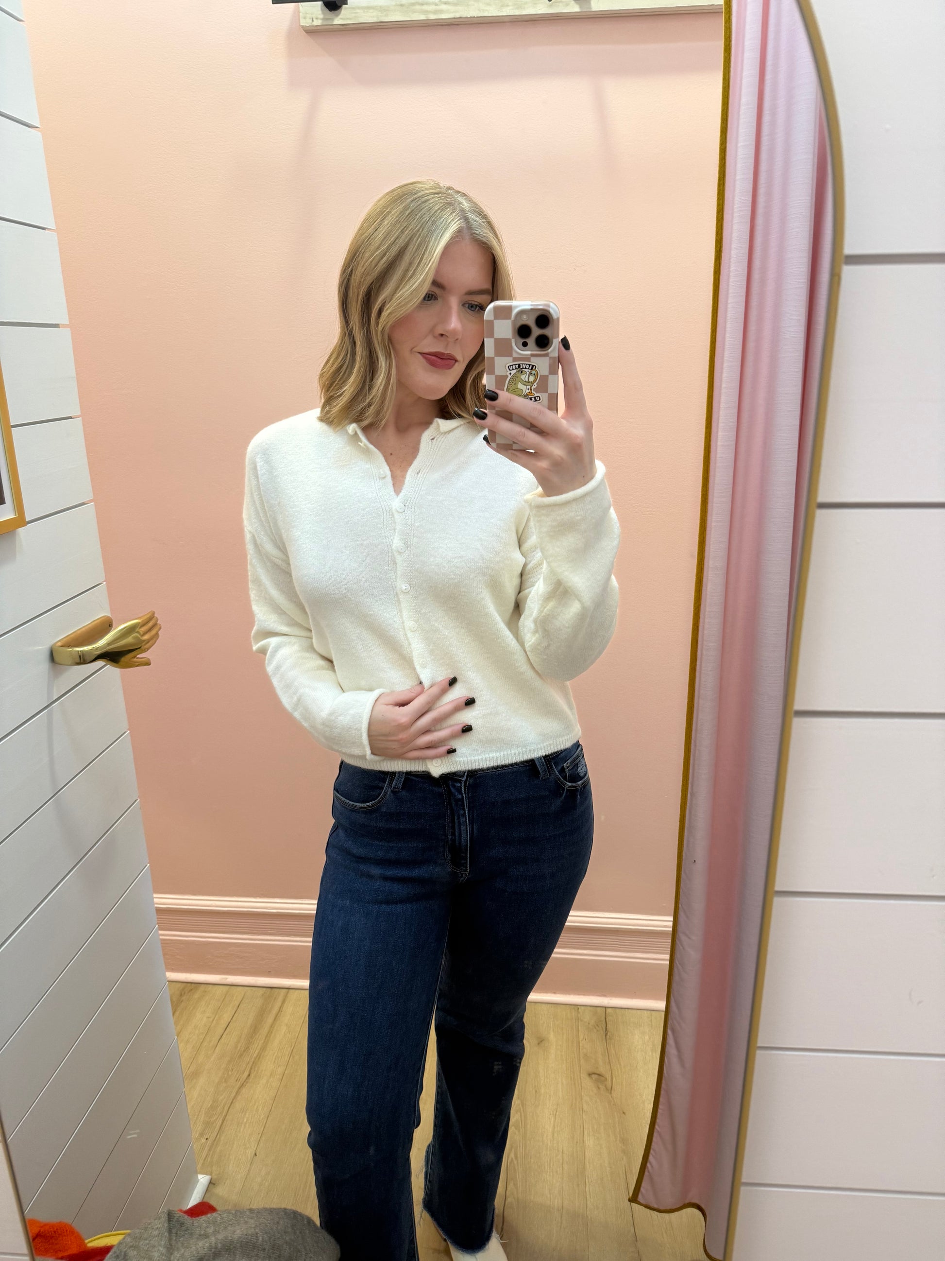 "Experience perfection with our My Favorite Cardi. Available in 6 versatile colors, this cardi features button details that fall perfectly at the hip, making it a stylish standalone piece or a perfect layering option. Elevate your wardrobe with this must-have!