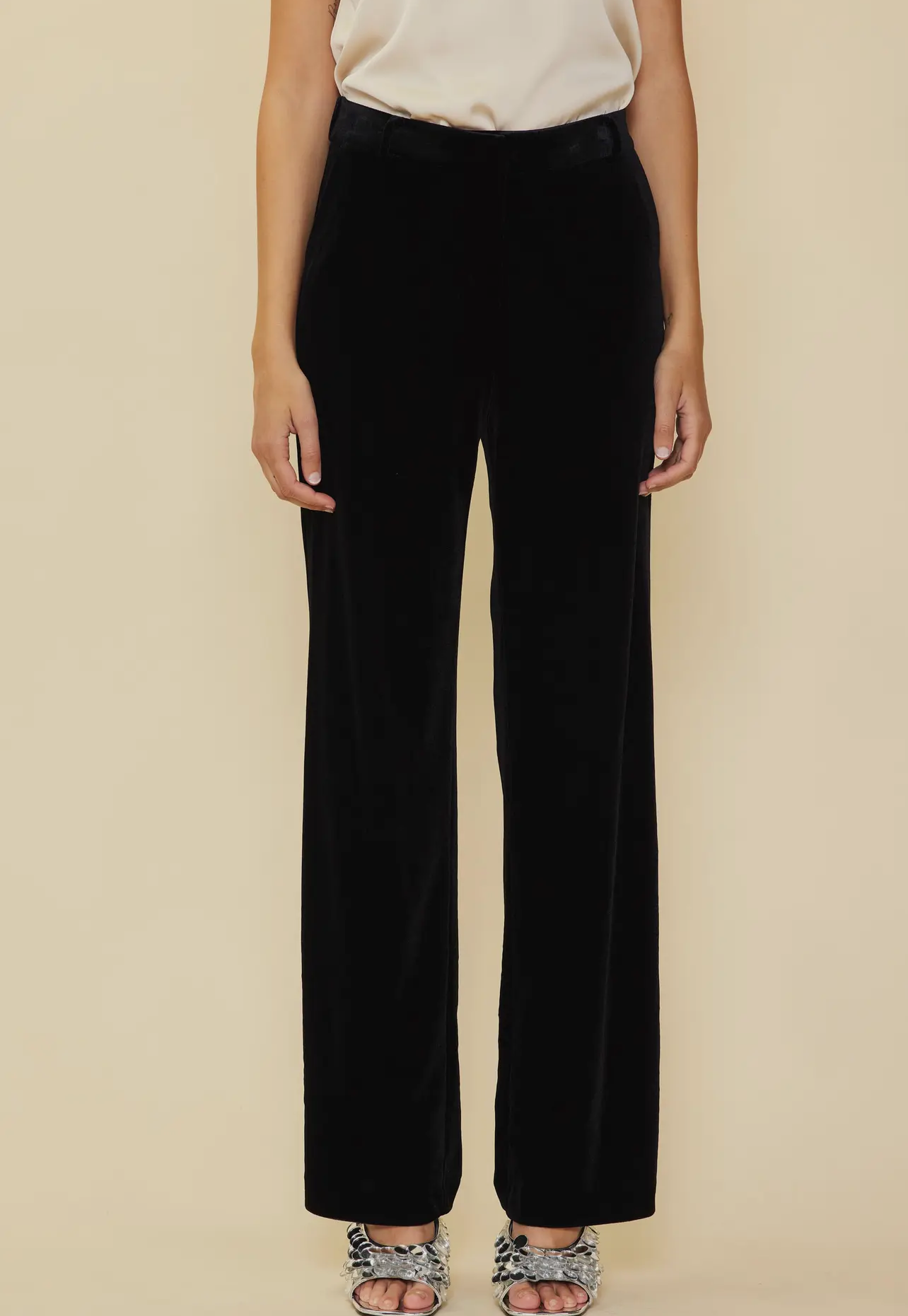 Elevate your wardrobe with our Glam Velvet Trouser! This high-waisted trouser features a tailored waistband for a festive and sophisticated look. Available in Burgundy or Black. We love the black paired with the velvet bow cardigan for a stylish ensemble. Don't miss the timeless charm when you pair “Winter’s Cozy Crewneck” sweater with the burgundy option. It's a match made in fashion heaven!